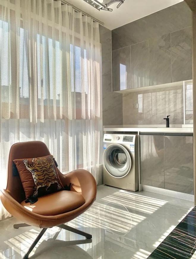 为了增加实用性,还可以增设洗手池,方便随手清洗物品。但是需要提前预留好电源、水龙头和地漏的位置,确保洗衣机、烘干机和洗手池的正常使用。