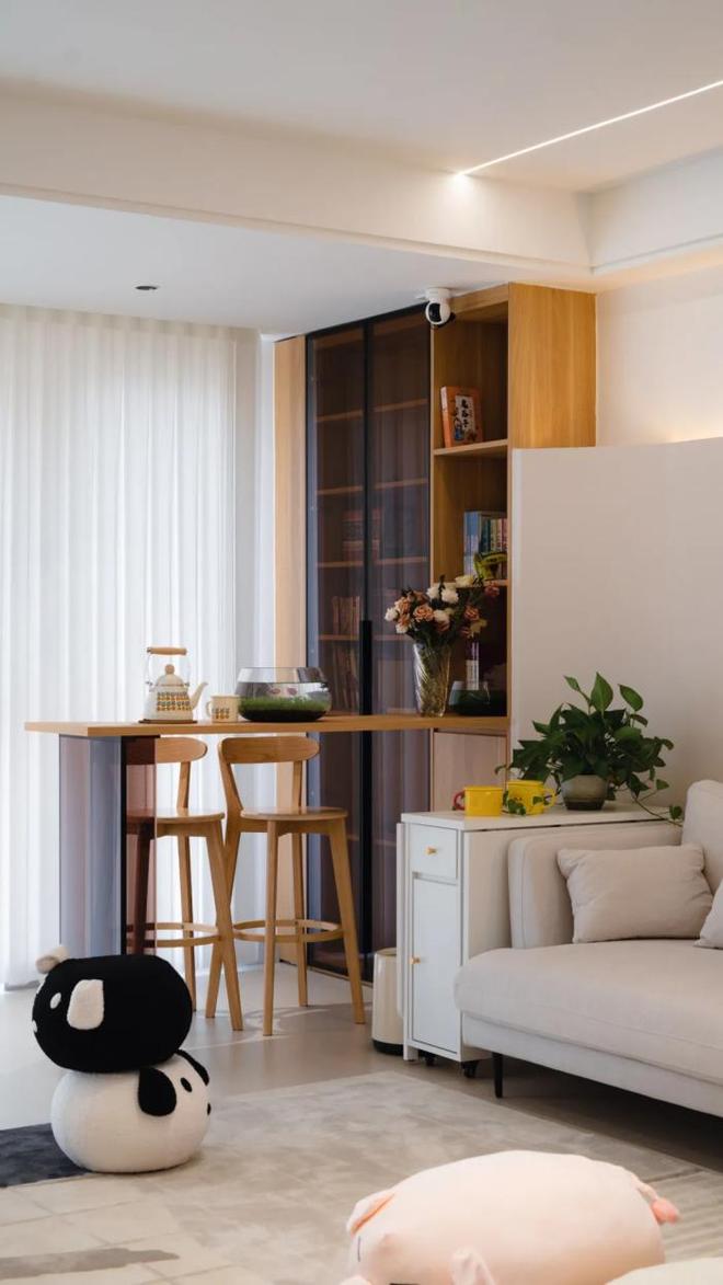 同时,这些储物柜也可以设计成与阳台风格相协调的外观,既实用又美观。如果是全打通的阳台,还可以将收纳柜与电视柜一起设计,营造出风格一致的和谐美感,空间整体性更强。