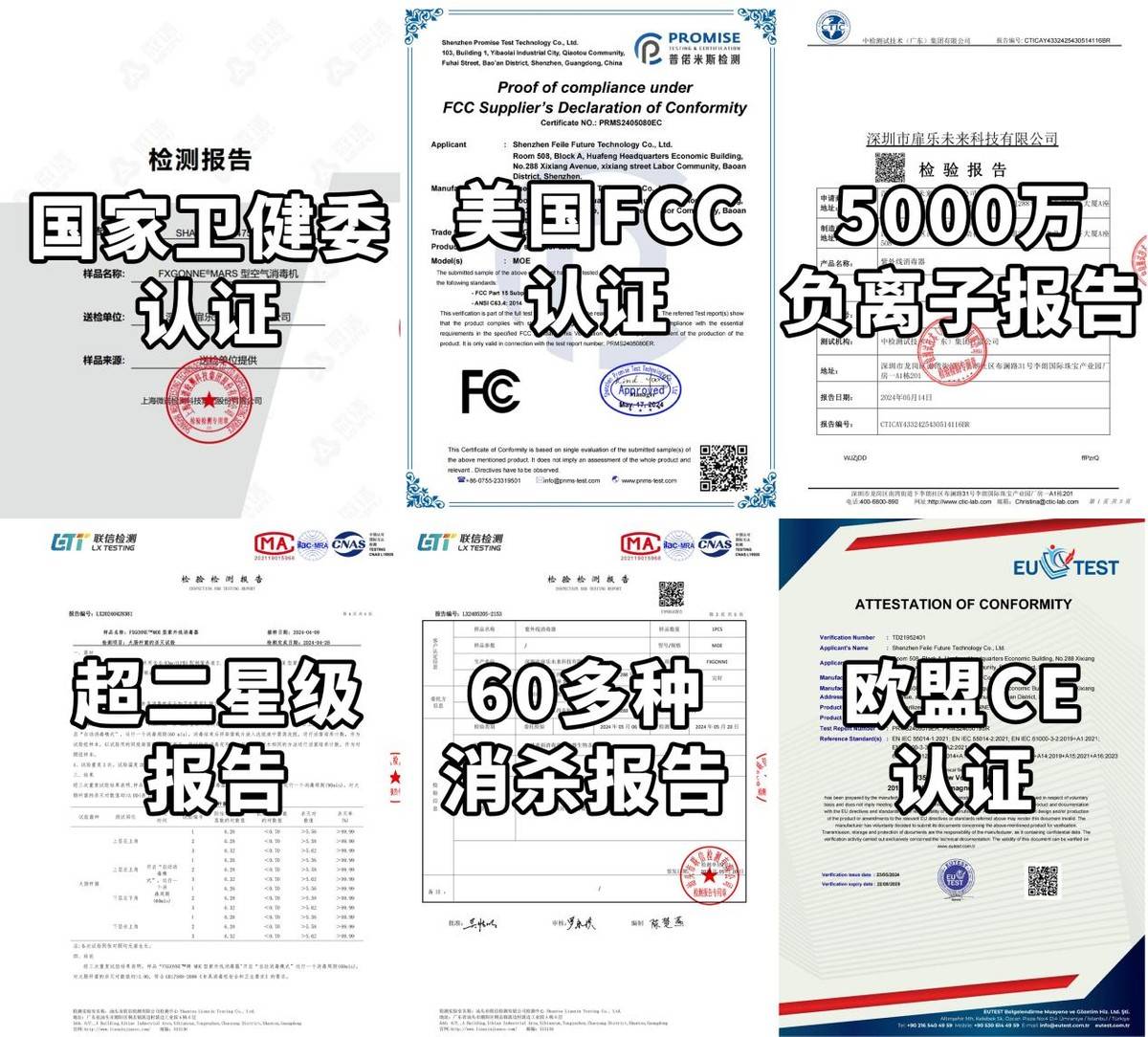 有力背书:它拿下国家消字号认证、国家卫健委备案以及超二星消杀认证,同时还有欧盟CE、美国FCC等认证,这比行业平均水平高出五倍之多(如下图)。现在市面上很多竞品使用半年后消杀性能就明显下滑,但它有8年之久的抗衰减认证,性能比较稳定。因此即便它很少做广告,在欧美也收获了高知名度。